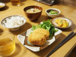 夜ごはん 舞茸とえびのクリームコロッケごはん Posted on 2026年3月14日 / 0件のコメント ・舞茸とえびのクリームコロッケ ・かぼちゃのチーズ焼き ・ブロッコリーのごまあえ ・きのこの豚汁 ・もち麦ごはん 急に作りたくなるもののひとつが、クリームコロッケなんですよね。 面倒すぎるんだよなぁ工程が多すぎるし冷やす...